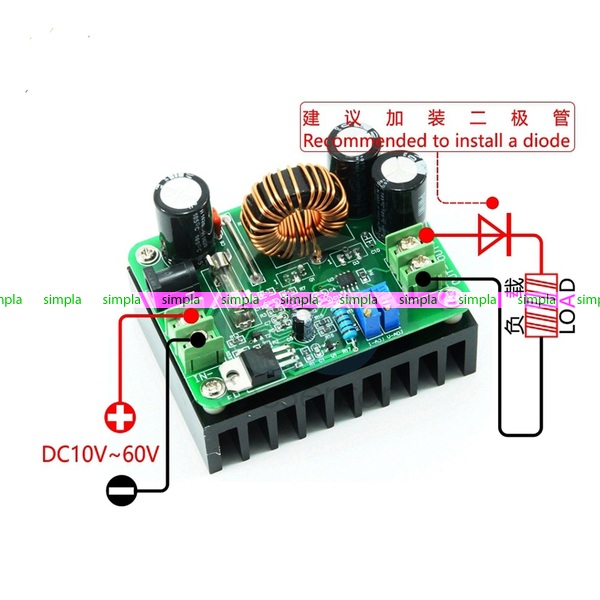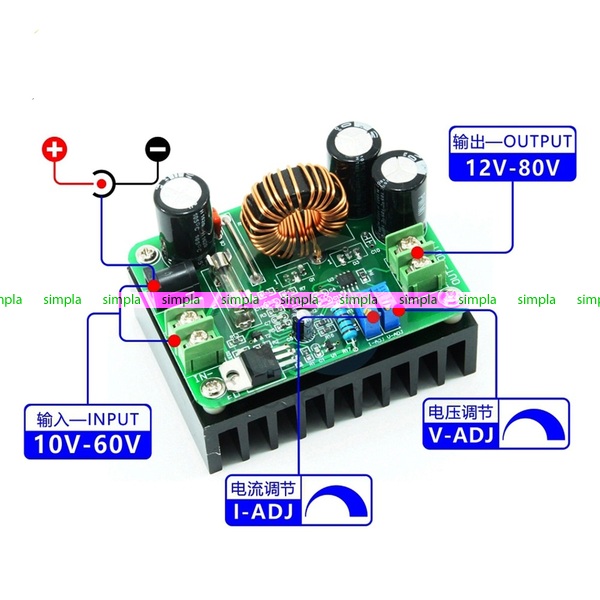 → Повышающий регулируемый CC и CV модуль 15A 300Wt DC 10 - 60V к 12 - 80V